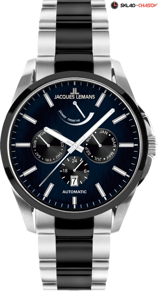 Японский механизм Miyota, работающий в часах серии 1-2204, оснащен функцией автоподзавода: его ротор способен заводить пружину, двигаясь от обычных движений руки, когда часы находятся на запястье владельца. На синем циферблате расположен индикатор запаса хода — он покажет примерное оставшееся время до окончания завода пружины. Кроме этого, в механизме предусмотрены дополнительные функции даты, дня недели, месяца и времени в формате 24-х часов. Центральные стрелки и риски выделены люминесцентным покрытием, оно светится в темноте, помогая определить время. Массивный корпус диаметром 44 мм выполнен из нержавеющей стали, дополненной PVD-покрытием черного цвета. В корпусе установлено минеральное стекло с сапфировым напылением. Конструкцией корпуса предусмотрена дополнительная защита для заводной головки. Водостойкость 10 атмосфер позволяет плавать, не снимая любимый аксессуар. Браслет часов состоит их стальных звеньев и надежной застежки-клипсы с логотипом бренда.