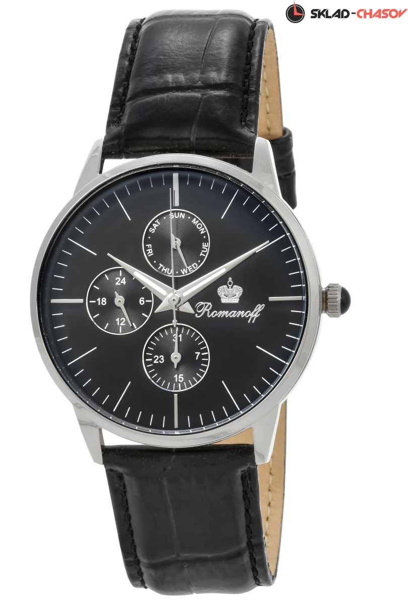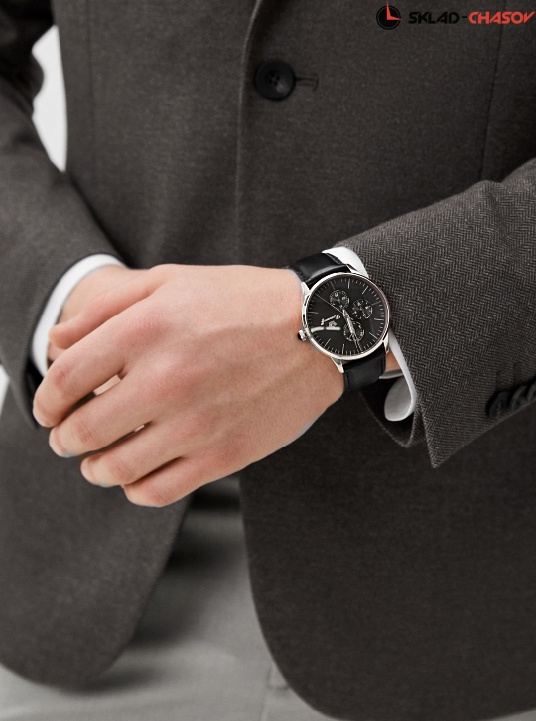 Функции: календарь чисел месяцев, календарь дней недели, 24 часовая шкала, центральные часовая, минутная и секундная стрелки