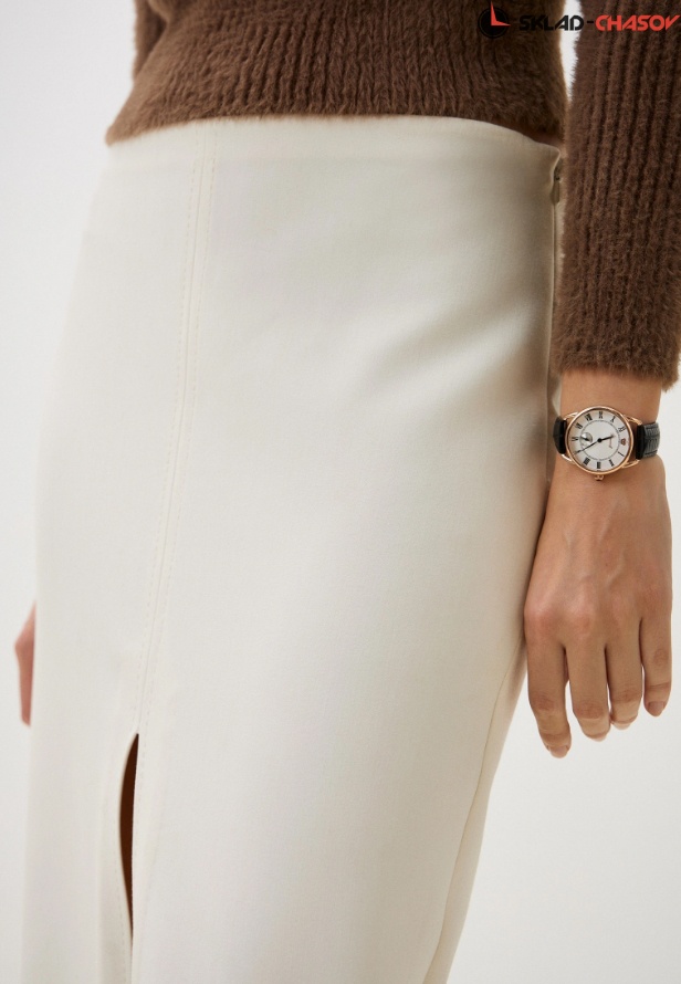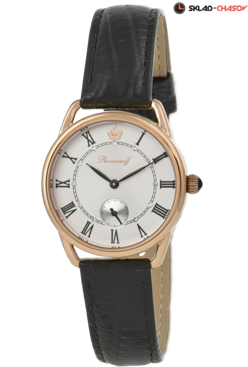 Циферблат: цвет - белый, накладные римские цифры, фигурная чеканка, кристаллы Swarovski в бриллиантовой огранке, золотая накладная корона