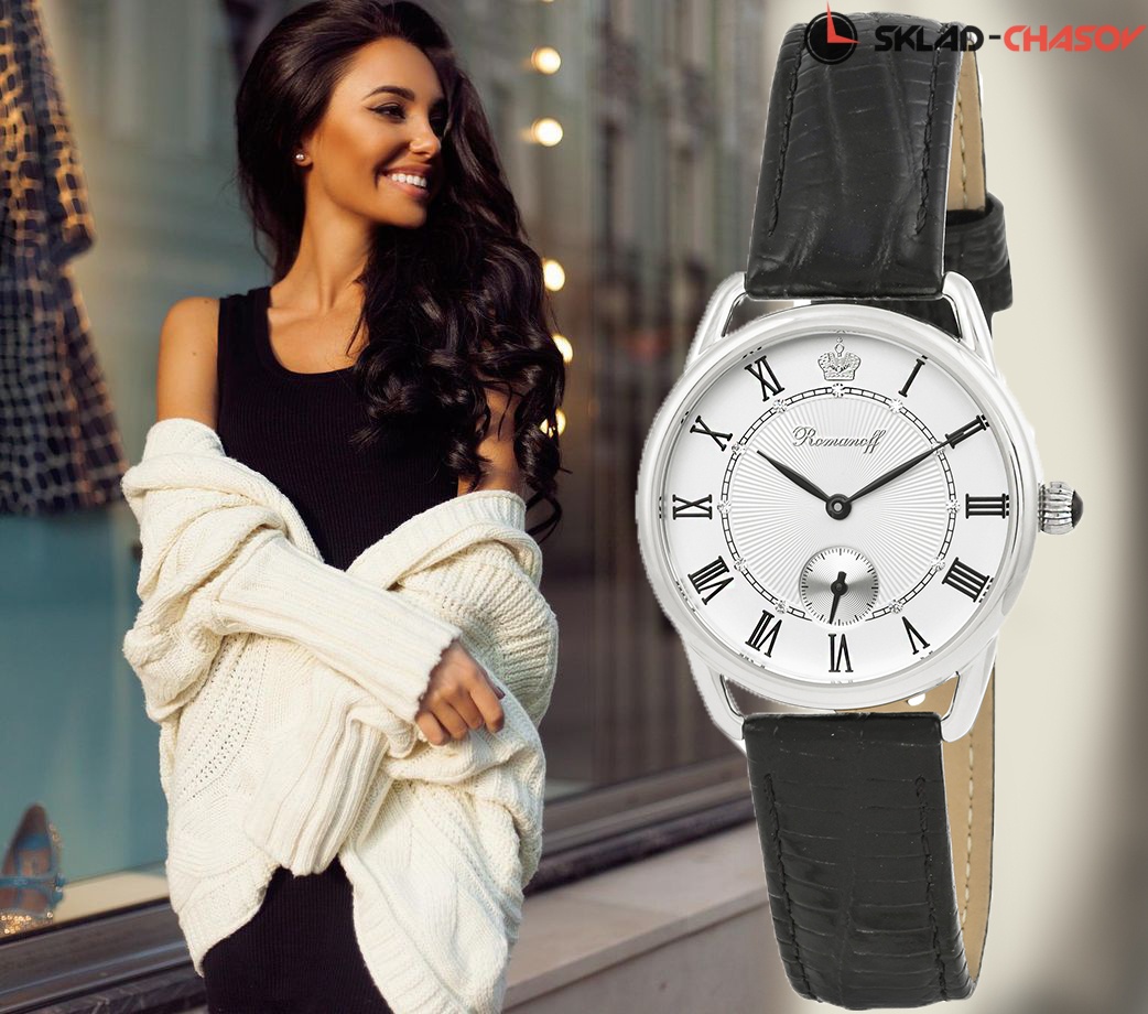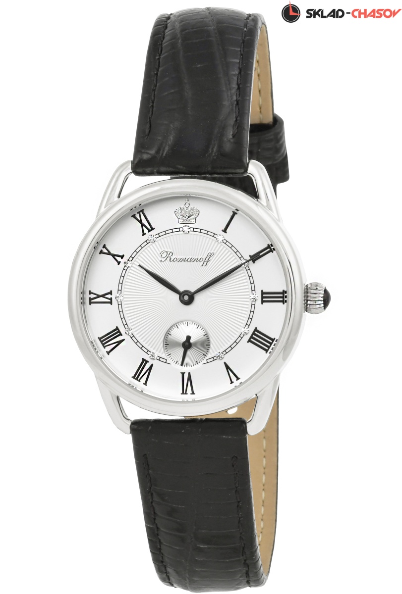 Циферблат: цвет - белый, накладные римские цифры, фигурная чеканка, кристаллы Swarovski в бриллиантовой огранке, золотая накладная корона