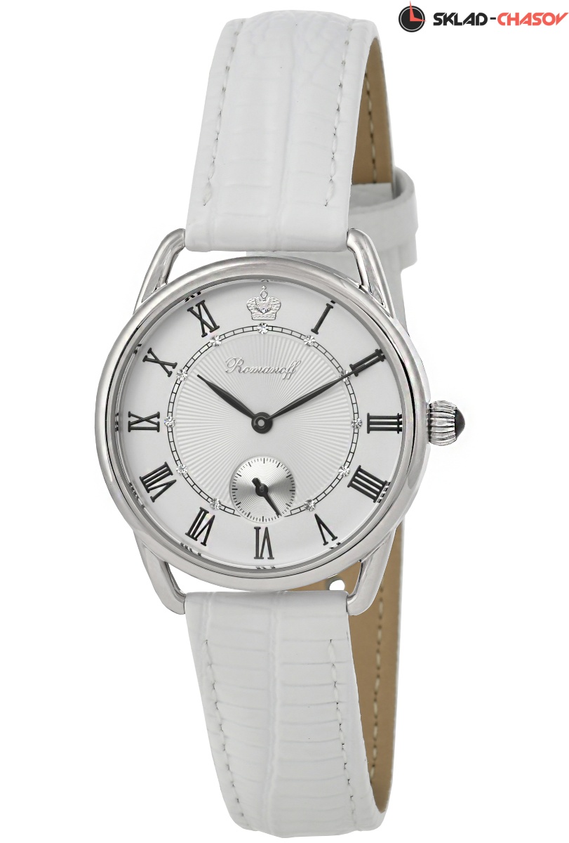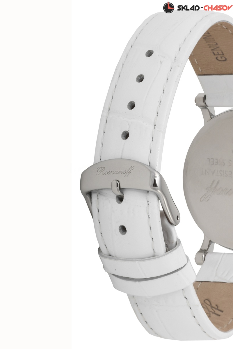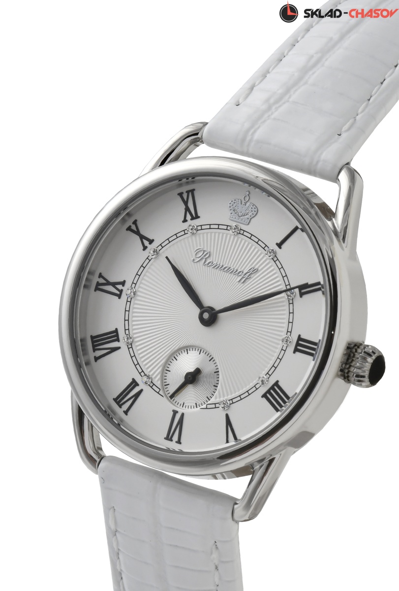 Циферблат: цвет - белый, накладные римские цифры, фигурная чеканка, кристаллы Swarovski в бриллиантовой огранке, золотая накладная корона