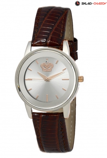 Циферблат: серебристый, фианит в короне, позолоченные индексы и стрелки