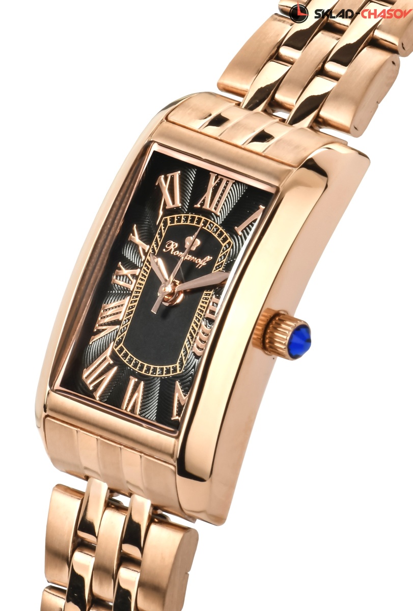 Циферблат: черный, гильошированный, римские золотые цифры, синенные стрелки