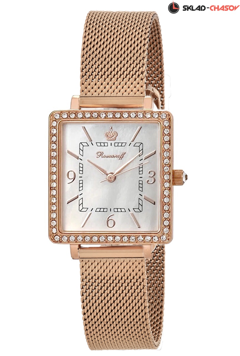 Циферблат: натуральный морской перламутр, золотые стрелки, объемная золотая императорская корона, золотые арабские цифры и индексы, бриллиант Swarovski в короне
