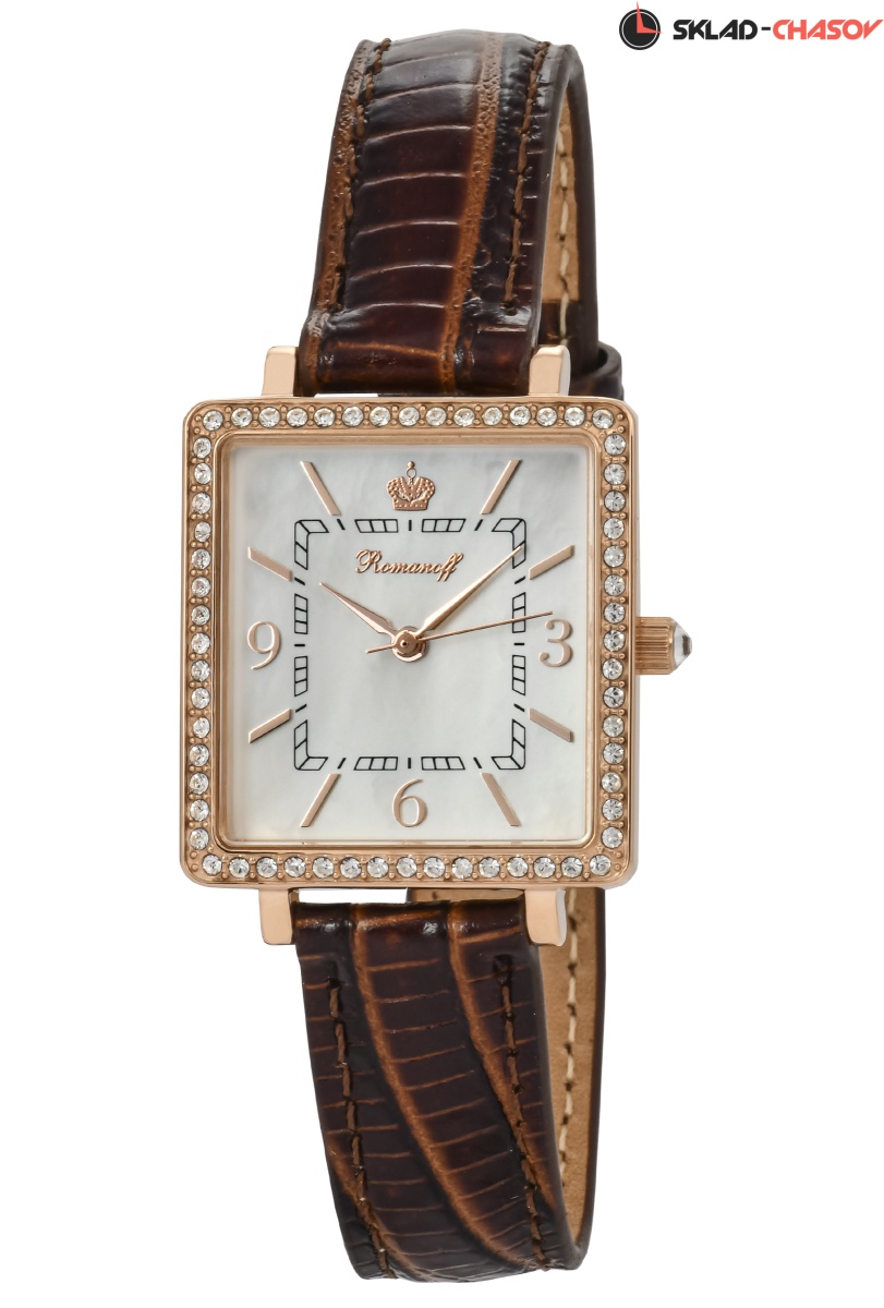 Циферблат: натуральный морской перламутр, золотые стрелки, объемная золотая императорская корона, бриллиант Swarovski в короне, золотые арабские цифры и индексы