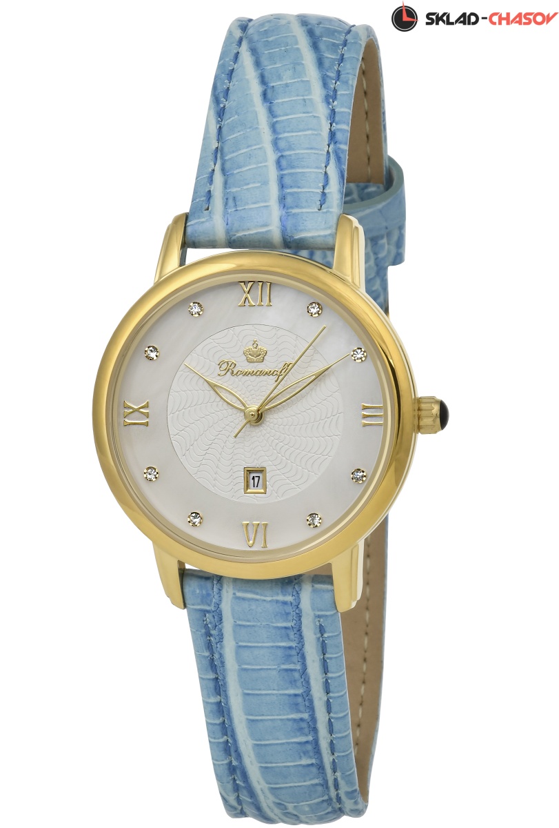 Циферблат: белый натуральный морской перламутр, кристаллы Swarovski в бриллиантовой огранке, гильошированный, римские цифры