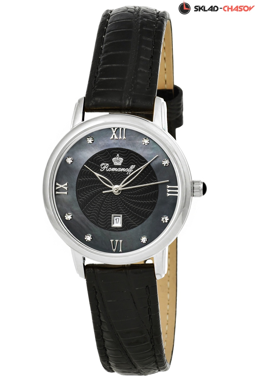 Циферблат: черный натуральный морской перламутр, кристаллы Swarovski в бриллиантовой огранке, гильошированный, римские цифры