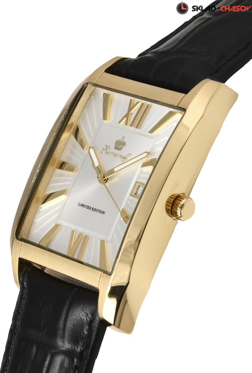 Циферблат: молочно-серебристый, цвет - светло-серебристый, золотые объемные римские цифры и индексы, люминесцентные золотые стрелки