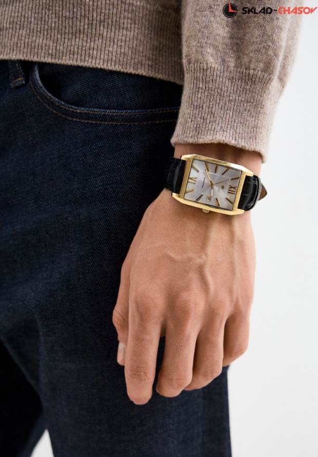 Циферблат: молочно-серебристый, цвет - светло-серебристый, золотые объемные римские цифры и индексы, люминесцентные золотые стрелки