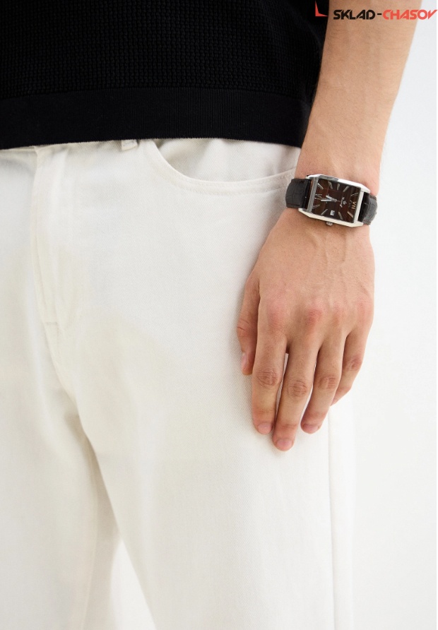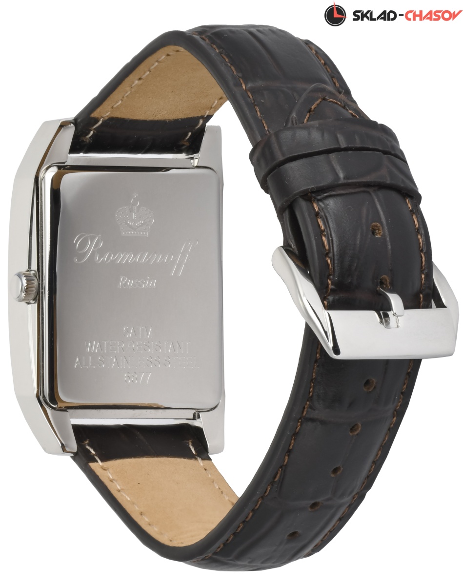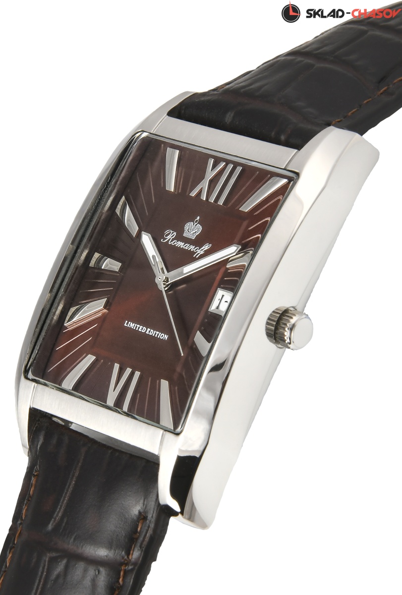 Циферблат: цвет - темный шоколад, фигурная чеканка, серебряные объемные римские цифры и индексы, люминесцентные стрелки