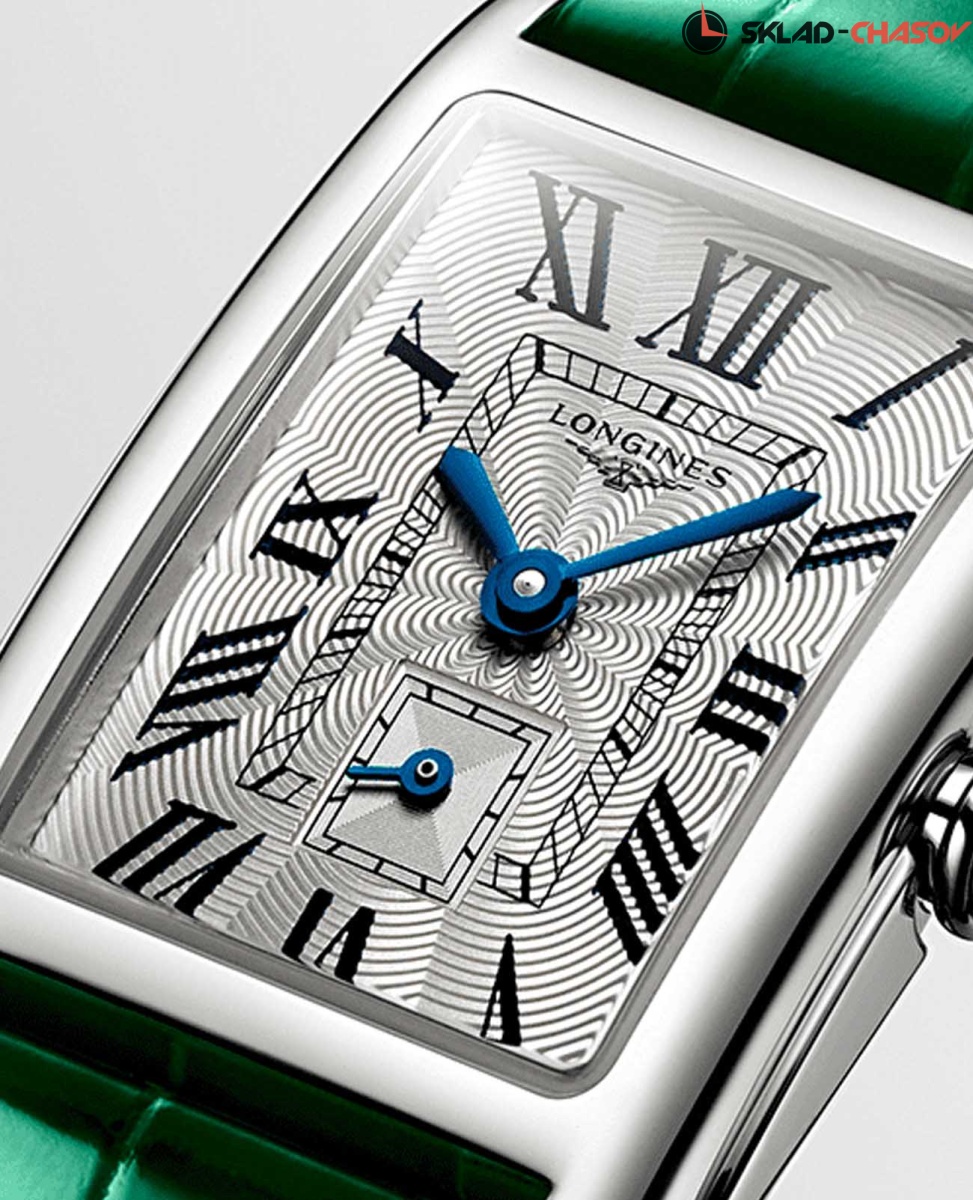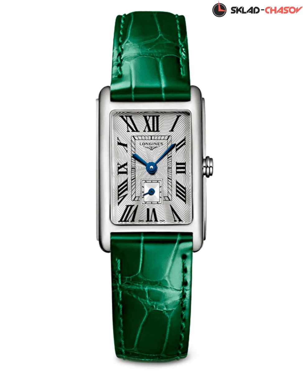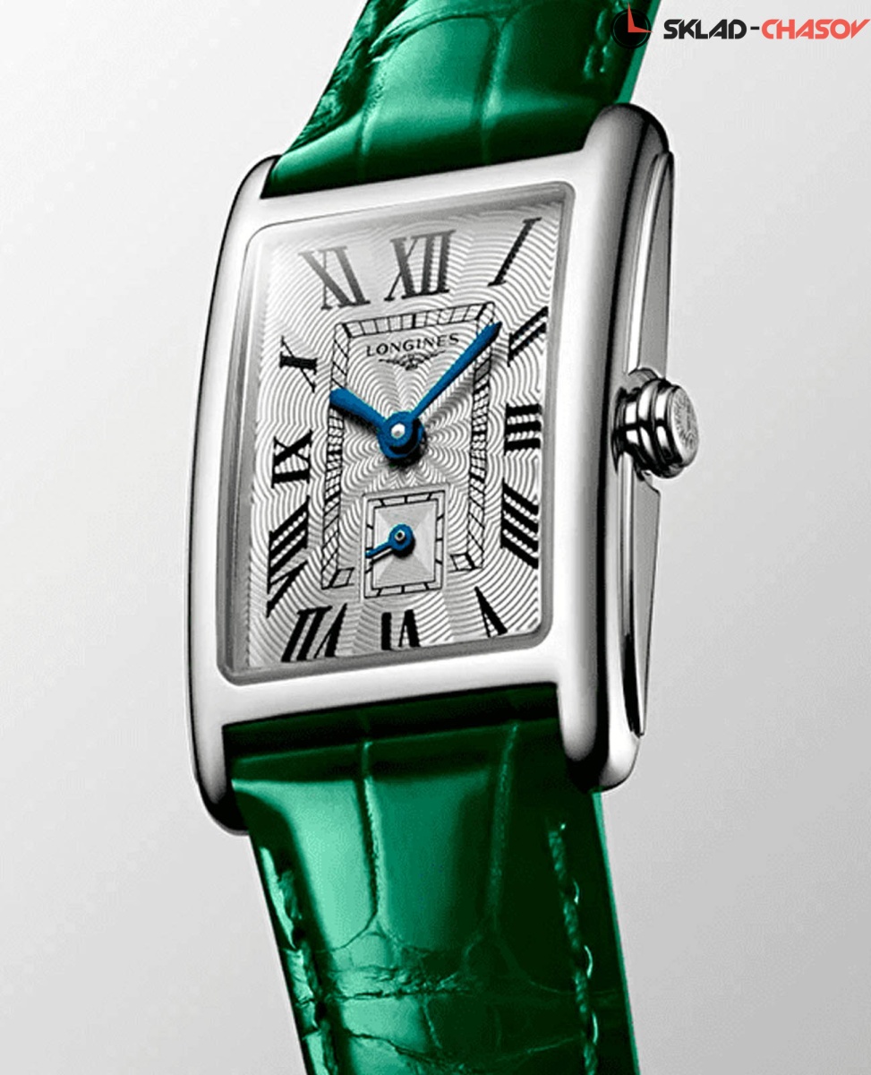 Женские швейцарские часы Longines DolceVita L5255471A, кварцевый механизм с высокой точностью. Сапфировое стекло устойчивое к появлению царапин, обладающее высокой прозрачностью. Корпус часов изготовлен из нержавеющей стали. Циферблат украшен узором «Flinque», метки в виде римских цифр. Окошко даты в положении 6 часов. Класс водозащиты: 30 метров, позволит защитить корпус от случайных брызг или капель дождя. Ремешок из кожи аллигатора с системой быстрой замены на стандартной застежке.