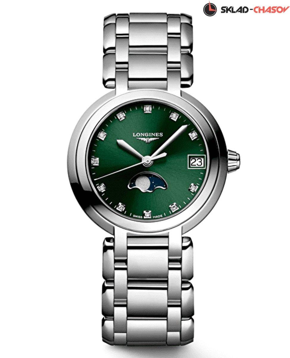 Женские швейцарские часы Longines PrimaLuna L81154676, кварцевый механизм с высокой точностью. Исключительно женственная коллекция. Округлые, нежные линии Longines Prima Luna - дань преклонения перед женственной Луной, символом переменчивости времени. Сапфировое стекло устойчивое к появлению царапин, обладающее высокой прозрачностью. Корпус часов изготовлен из нержавеющей стали. Изысканная чистота циферблата подчеркивает ее мягкий силуэт, обрамленный сиянием бриллиантов. Окошко даты в положении 3 часов. Указатель фазы луны в положении 6 часов. Класс водозащиты: 30 метров, позволит защитить корпус от случайных брызг или капель дождя. Стальной браслет на застёжке «бабочка» с кнопками.