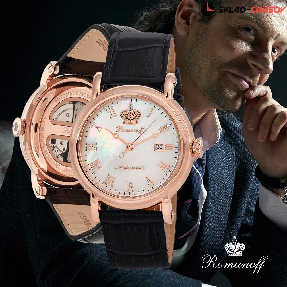 "Механизм: механический с автоподзаводом Miyota, Япония (по заказу Romanoff)