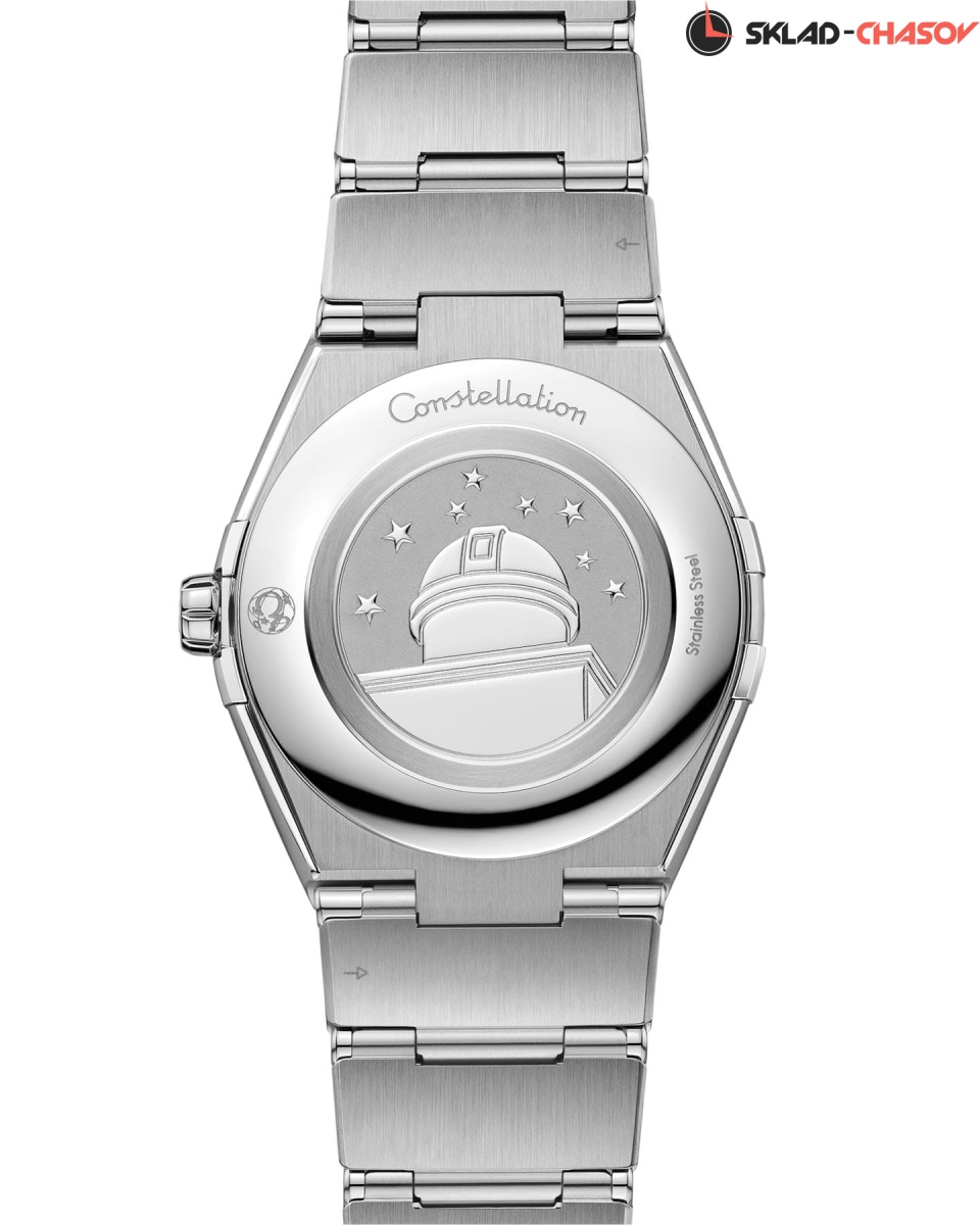 Драматичный и неизменный дизайн OMEGA Constellation характеризуется знаменитыми полумесяцами, «скобами» на корпусе и браслетом-моногранником. Эта 36-миллиметровая модель из нержавеющей стали оснащена безелем с выгравированными римскими цифрами, черным циферблатом с солнечной матовой поверхностью и окошком даты в положении «6 часов». Стрелки, логотип OMEGA, звезда Constellation и индексы выполнены из белого золота 18 карат. Сердцем этих часов является хронометр OMEGA 4564, расположенный за матовой задней крышкой с рельефным медальоном обсерватории Constellation.
