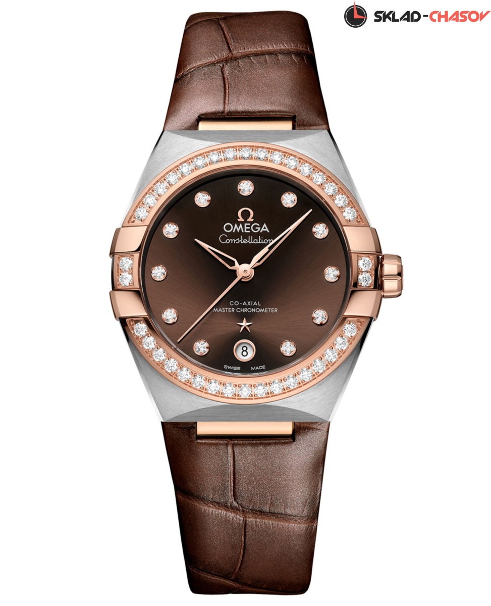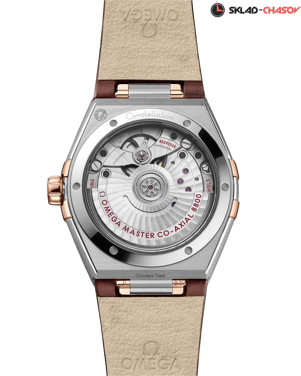 Драматичный и запоминающийся дизайн OMEGA Constellation характеризуется знаменитыми гранями полумесяца и «скобами» на корпусе. Эта 36-миллиметровая модель из нержавеющей стали и золота 18 карат Sedna™ имеет полированный безель с 38 бриллиантами, коричневый циферблат с PVD-покрытием, матовым покрытием от солнца и окошком даты в положении «6 часов». Стрелки, логотип OMEGA, звезда Constellation и индексы выполнены из золота 18 карат Sedna™. Знаменитый монобраслет Constellation заменен на кожаный ремешок того же цвета, что и циферблат. Сердцем этих часов является коаксиальный хронометр OMEGA Master Chronometer Calibre 8800, видимый через устойчивое к царапинам сапфировое стекло.