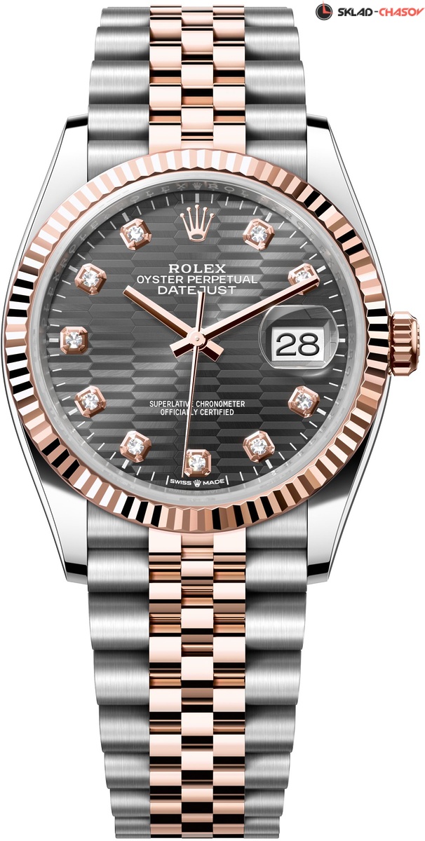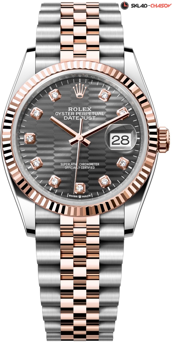 Модель 126231-0041 на браслете со звеньями в 5 рядов из материала Rolesor - золото Everose 18К и Oystersteel, высокосортная сталь марки 904L. Гибкий и удобный браслет Jubilee был разработан специально для модели Oyster Perpetual Datejust, созданной в 1945 году к 40-летнему юбилею Rolex. Раскладывающаяся застежка с запатентованной системой быстрого удлинения Easylink. Она скрыта под застежкой и позволяет без дополнительных инструментов регулировать длину браслета примерно на 5 мм за счет дополнительного звена, которое легко складывается и раскладывается.