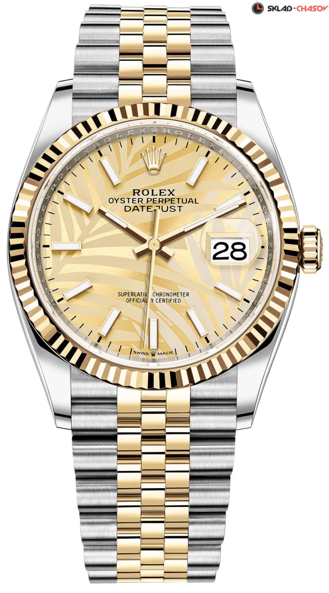 Модель 126233-0037 на браслете со звеньями в 5 рядов из материала Rolesor - желтое золото 18К и Oystersteel, высокосортная сталь марки 904L. Гибкий и удобный браслет Jubilee был разработан специально для модели Oyster Perpetual Datejust, созданной в 1945 году к 40-летнему юбилею Rolex. Раскладывающаяся застежка с запатентованной системой быстрого удлинения Easylink. Она скрыта под застежкой и позволяет без дополнительных инструментов регулировать длину браслета примерно на 5 мм за счет дополнительного звена, которое легко складывается и раскладывается.