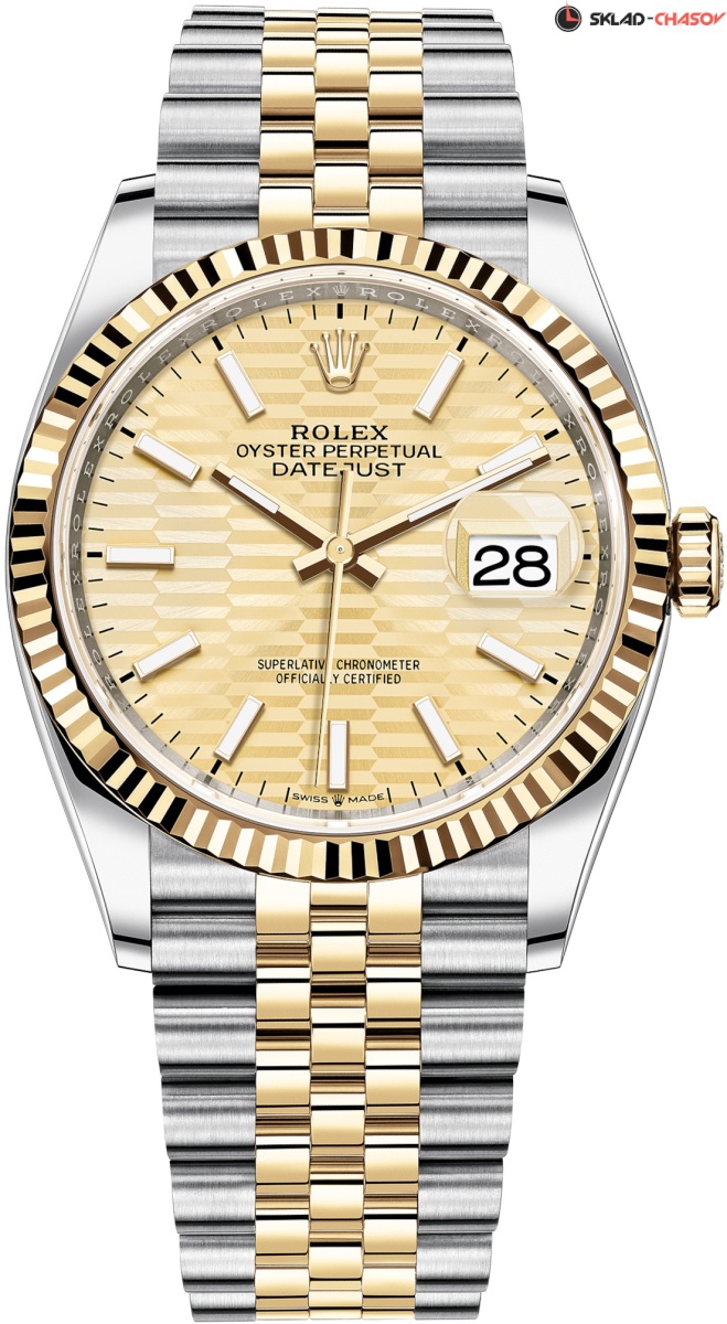 Модель 126233-0039 на браслете со звеньями в 5 рядов из материала Rolesor - желтое золото 18К и Oystersteel, высокосортная сталь марки 904L. Гибкий и удобный браслет Jubilee был разработан специально для модели Oyster Perpetual Datejust, созданной в 1945 году к 40-летнему юбилею Rolex. Раскладывающаяся застежка с запатентованной системой быстрого удлинения Easylink. Она скрыта под застежкой и позволяет без дополнительных инструментов регулировать длину браслета примерно на 5 мм за счет дополнительного звена, которое легко складывается и раскладывается.
