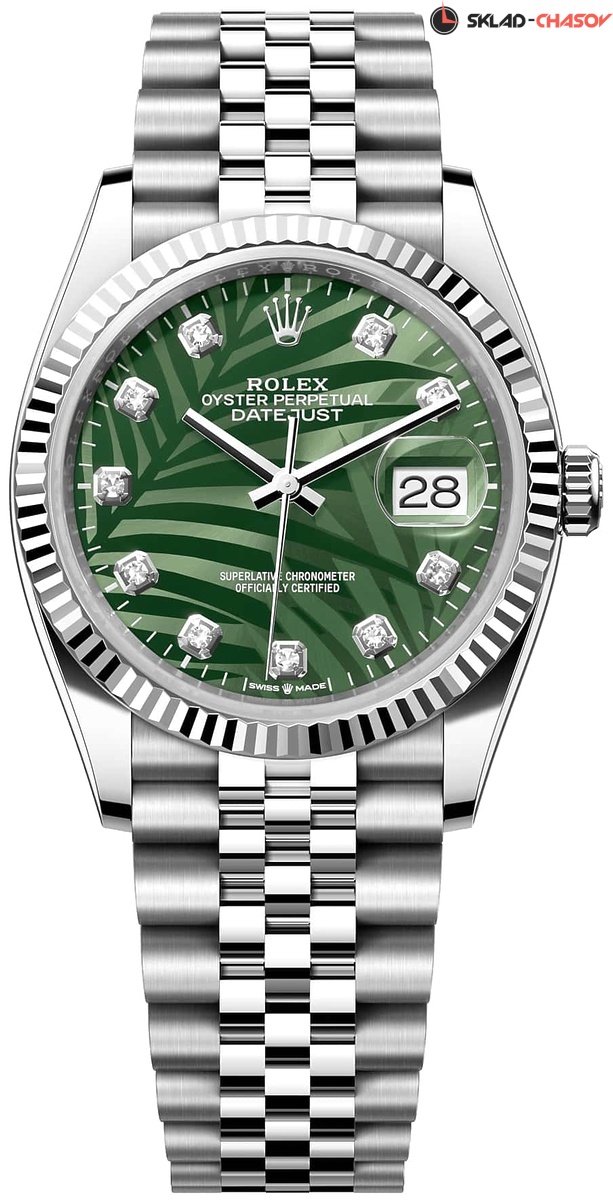 Модель 126234-0055 на браслете со звеньями в 5 рядов из материала Oystersteel - высокосортная сталь марки 904L. Гибкий и удобный браслет Jubilee был разработан специально для модели Oyster Perpetual Datejust, созданной в 1945 году к 40-летнему юбилею Rolex. Раскладывающаяся застежка с запатентованной системой быстрого удлинения Easylink. Она скрыта под застежкой и позволяет без дополнительных инструментов регулировать длину браслета примерно на 5 мм за счет дополнительного звена, которое легко складывается и раскладывается.