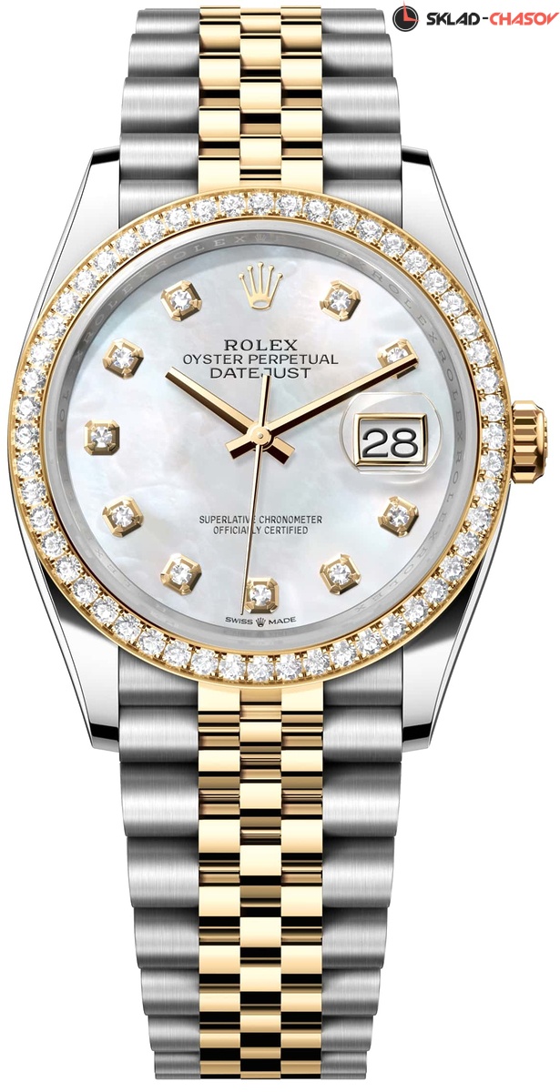 Уникальный циферблат из натурального перламутра белого цвета с применением специальных техник, подчеркивающих природную красоту и натуральные оттенки. Rolex не использует искусственное окрашивание перламутра. Инкрустация 10 бриллиантов в оправе из 18-каратного золота.