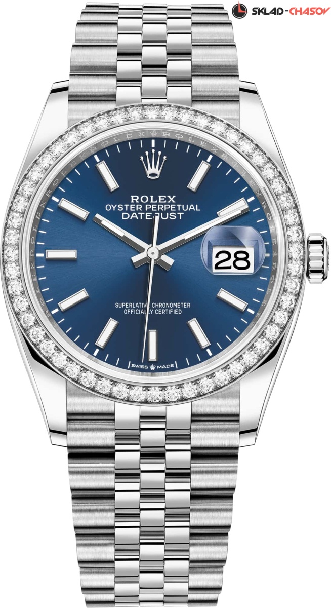 Модель 126284RBR-0009 на браслете со звеньями в 5 рядов из материала Oystersteel - высокосортная сталь марки 904L. Гибкий и удобный браслет Jubilee был разработан специально для модели Oyster Perpetual Datejust, созданной в 1945 году к 40-летнему юбилею Rolex. Раскладывающаяся застежка с запатентованной системой быстрого удлинения Easylink. Она скрыта под застежкой и позволяет без дополнительных инструментов регулировать длину браслета примерно на 5 мм за счет дополнительного звена, которое легко складывается и раскладывается.