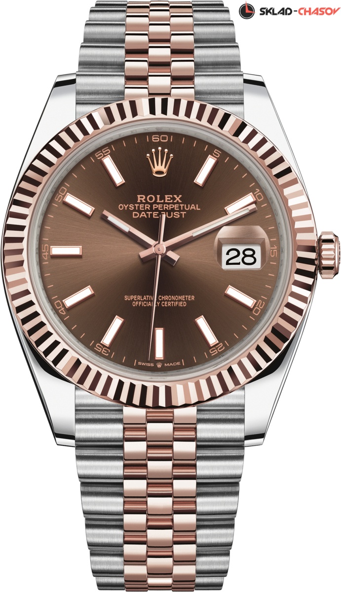 Модель 126331-0002 на браслете со звеньями в 5 рядов из материала Rolesor - золото Everose 18К и Oystersteel, высокосортная сталь марки 904L. Гибкий и удобный браслет Jubilee был разработан специально для модели Oyster Perpetual Datejust, созданной в 1945 году к 40-летнему юбилею Rolex. Раскладывающаяся застежка с запатентованной системой быстрого удлинения Easylink. Она скрыта под застежкой и позволяет без дополнительных инструментов регулировать длину браслета примерно на 5 мм за счет дополнительного звена, которое легко складывается и раскладывается.