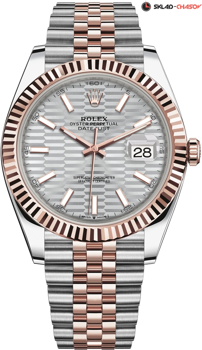 Модель 126331-0018 на браслете со звеньями в 5 рядов из материала Rolesor - золото Everose 18К и Oystersteel, высокосортная сталь марки 904L. Гибкий и удобный браслет Jubilee был разработан специально для модели Oyster Perpetual Datejust, созданной в 1945 году к 40-летнему юбилею Rolex. Раскладывающаяся застежка с запатентованной системой быстрого удлинения Easylink. Она скрыта под застежкой и позволяет без дополнительных инструментов регулировать длину браслета примерно на 5 мм за счет дополнительного звена, которое легко складывается и раскладывается.