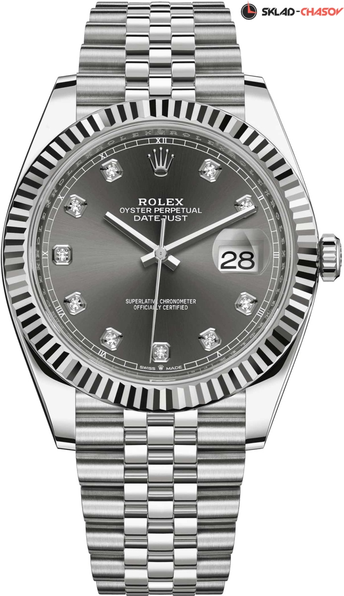 Модель 126334-0006 на браслете со звеньями в 5 рядов из материала Oystersteel - высокосортная сталь марки 904L. Гибкий и удобный браслет Jubilee был разработан специально для модели Oyster Perpetual Datejust, созданной в 1945 году к 40-летнему юбилею Rolex. Раскладывающаяся застежка с запатентованной системой быстрого удлинения Easylink. Она скрыта под застежкой и позволяет без дополнительных инструментов регулировать длину браслета примерно на 5 мм за счет дополнительного звена, которое легко складывается и раскладывается.