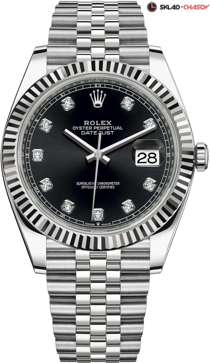 Модель 126334-0012 на браслете со звеньями в 5 рядов из материала Oystersteel - высокосортная сталь марки 904L. Гибкий и удобный браслет Jubilee был разработан специально для модели Oyster Perpetual Datejust, созданной в 1945 году к 40-летнему юбилею Rolex. Раскладывающаяся застежка с запатентованной системой быстрого удлинения Easylink. Она скрыта под застежкой и позволяет без дополнительных инструментов регулировать длину браслета примерно на 5 мм за счет дополнительного звена, которое легко складывается и раскладывается.