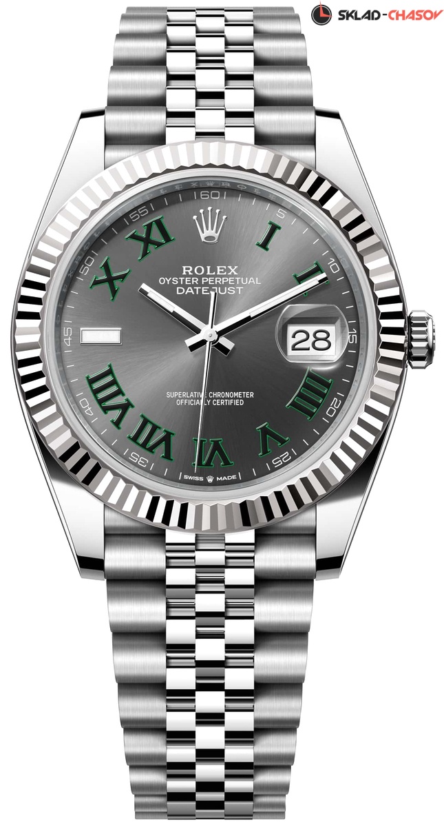 Модель 126334-0022 на браслете со звеньями в 5 рядов из материала Oystersteel - высокосортная сталь марки 904L. Гибкий и удобный браслет Jubilee был разработан специально для модели Oyster Perpetual Datejust, созданной в 1945 году к 40-летнему юбилею Rolex. Раскладывающаяся застежка с запатентованной системой быстрого удлинения Easylink. Она скрыта под застежкой и позволяет без дополнительных инструментов регулировать длину браслета примерно на 5 мм за счет дополнительного звена, которое легко складывается и раскладывается.