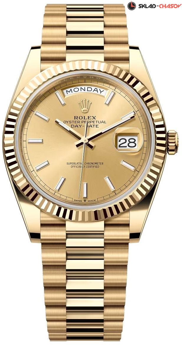 Швейцарские часы Rolex Day-Date 40 228238-0003 созданы для успешных современных мужчин и женщин, предпочитающих динамичный классический стиль и не чуждых настоящей роскоши. Уникальные, неподвластные времени модели Rolex Day-Date стали выбором многих самых известных персон благодаря своей непревзойденной надежности и элегантности. Корпус Oyster был первым в мире с запатентованной водонепроницаемостью, разработанный Rolex в 1926 году. Изготовленный из самых чистых и престижных сплавов, корпус Oyster обладает повышенной устойчивостью к любому внешнему воздействию. Внутри него работает мануфактурный механизм превосходящий своей точностью хронометры C.O.S.C.