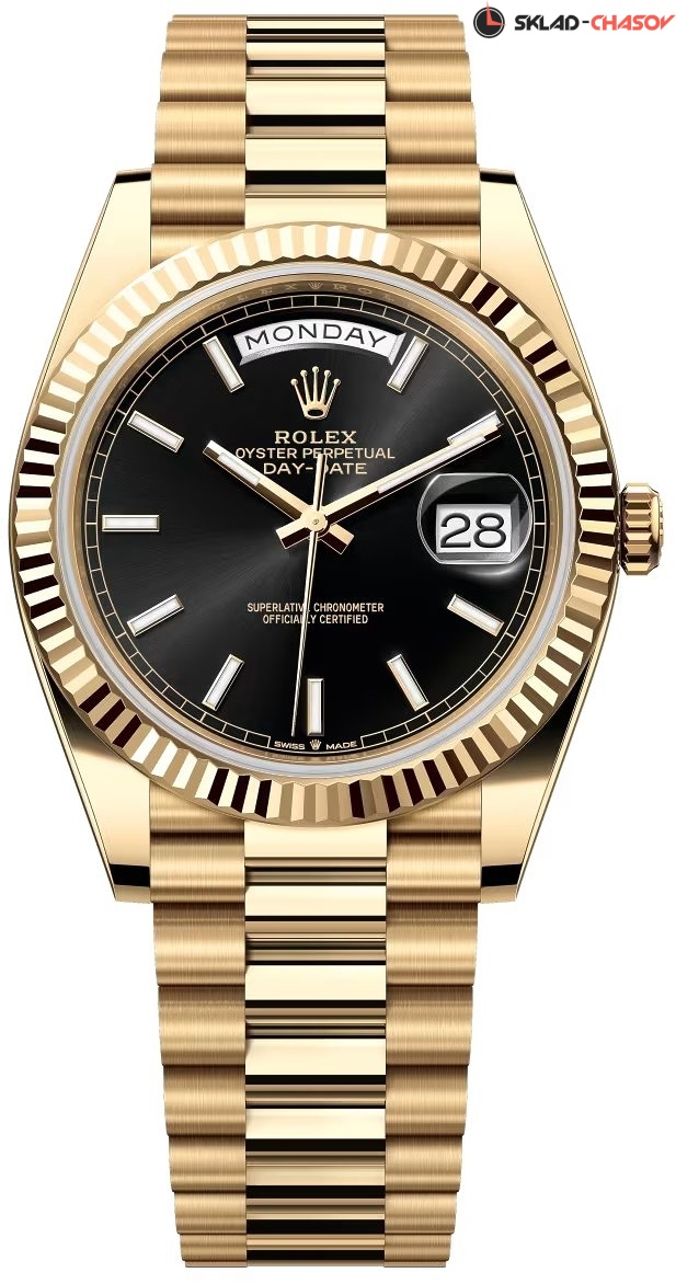 Швейцарские часы Rolex Day-Date 40 228238-0067 созданы для успешных современных мужчин и женщин, предпочитающих динамичный классический стиль и не чуждых настоящей роскоши. Уникальные, неподвластные времени модели Rolex Day-Date стали выбором многих самых известных персон благодаря своей непревзойденной надежности и элегантности. Корпус Oyster был первым в мире с запатентованной водонепроницаемостью, разработанный Rolex в 1926 году. Изготовленный из самых чистых и престижных сплавов, корпус Oyster обладает повышенной устойчивостью к любому внешнему воздействию. Внутри него работает мануфактурный механизм превосходящий своей точностью хронометры C.O.S.C.