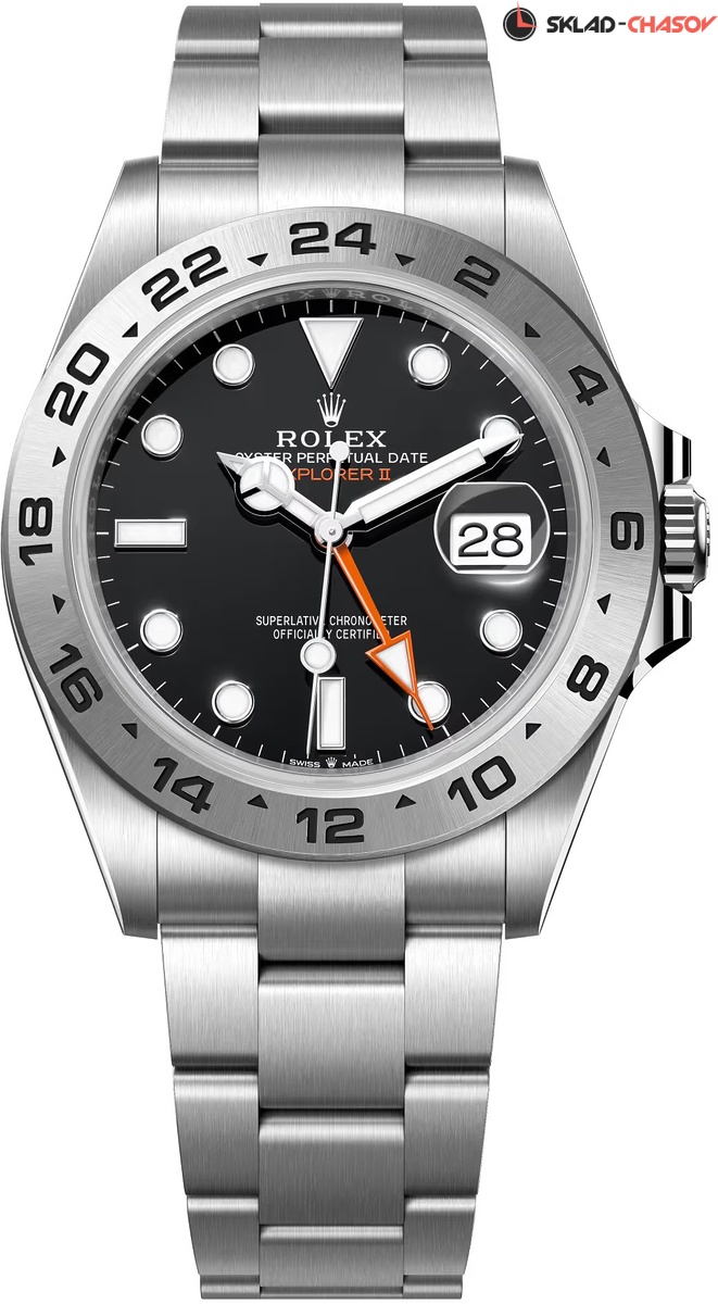 Швейцарские часы Rolex Explorer II 226570-0002 созданы для исследователей, постоянно двигающихся вперед и стремящихся найти что-то новое. На Земле и по сей день остаются неисследованные места. С момента выпуска в 1971 году часов Explorer II марка Rolex поддерживает самых разных исследователей в их стремлении открывать что-то новое. Эта модель ночной индикацией Chromalight, 24‑часовой шкалой на безелем и оранжевой стрелкой позволяет исследователям и ученым отличать день от ночи и лучше ориентироваться в темноте. Модели Explorer II пользуются любовью спелеологов, опускающихся в недра Земли, покровителей горных вершин и полярников, пересекающих ледяные просторы. Корпус Oyster был первым в мире с запатентованной водонепроницаемостью, разработанный Rolex в 1926 году. Изготовленный из самых чистых сплавов, корпус Oyster обладает повышенной устойчивостью к любому внешнему воздействию. Внутри него работает мануфактурный механизм превосходящий своей точностью хронометры C.O.S.C.