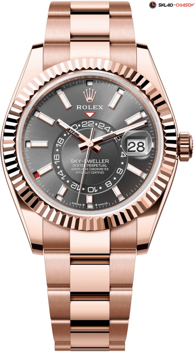 Швейцарские часы Rolex Oyster Perpetual Sky‑Dweller 326935-0007 созданы для успешных современных мужчин, предпочитающих активный образ жизни и часто путешествующих по миру. Модели Oyster Perpetual Sky‑Dweller, благодаря безелю Ring Command, позволяют одновременно видеть время в двух часовых поясах и имеют годовой календарь Rolex Saros. C момента запуска в 2012 году часы Sky‑Dweller стали незаменимыми для людей, путешествующих из одного часового пояса в другой. С ними легко избежать неудобств, связанных с разницей во времени, и заранее планировать свой график. Изготовленный из самых чистых и престижных сплавов, корпус Oyster обладает повышенной устойчивостью к любому внешнему воздействию. Внутри него работает мануфактурный механизм имеющий революционную конструкцию и превосходящий своей точностью хронометры C.O.S.C.