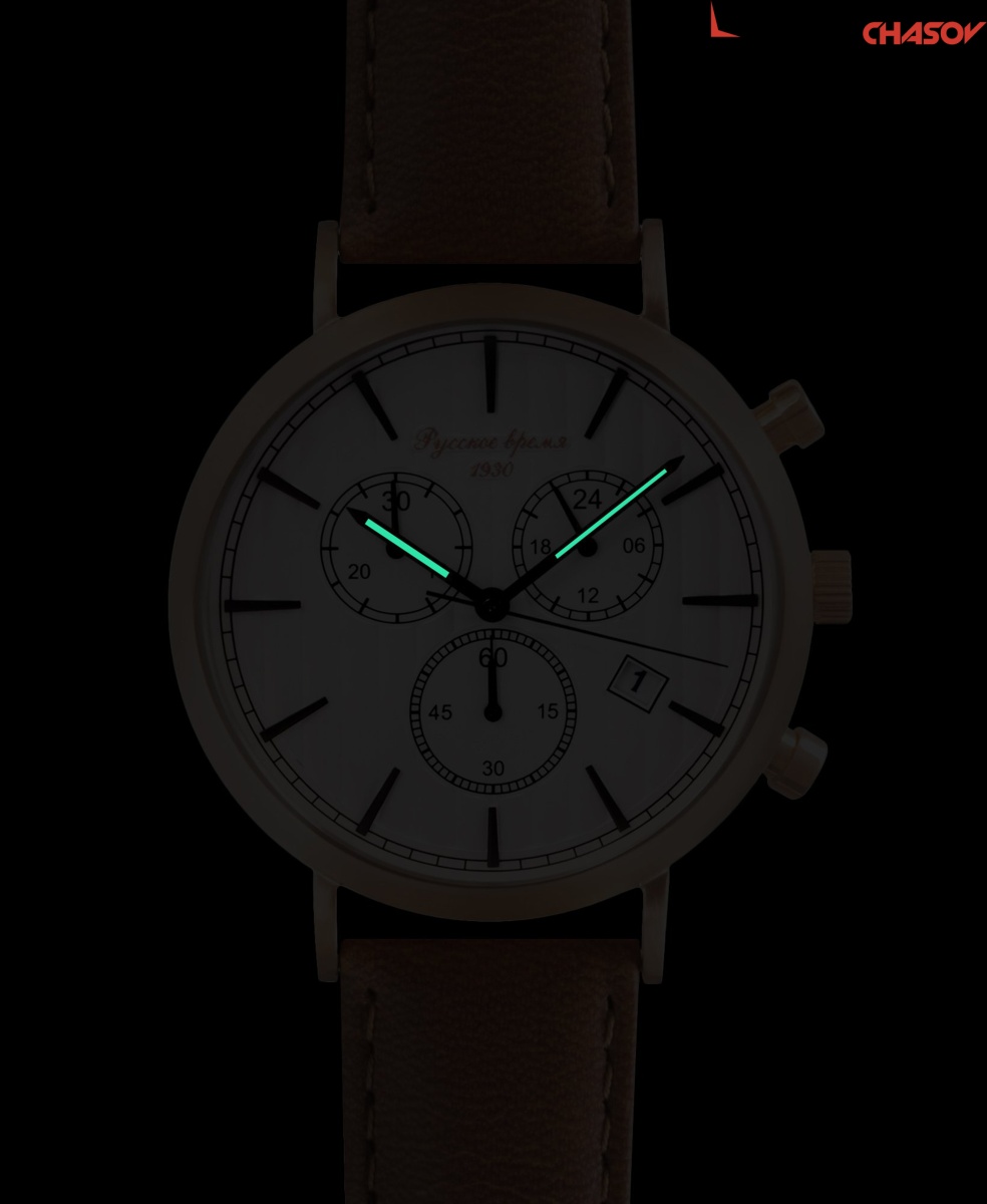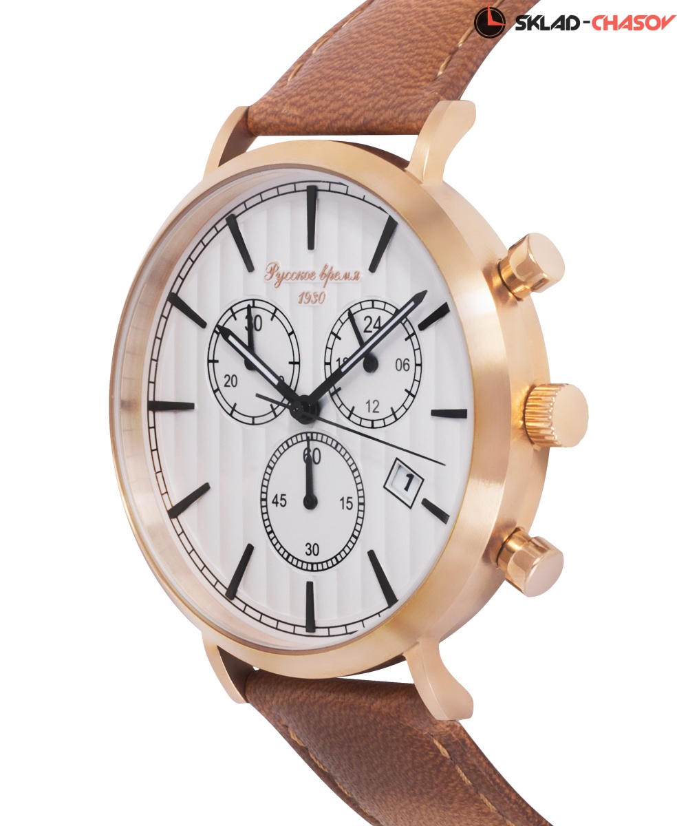 Элегантная классика в современном исполнении – это наручные часы с кварцевым хронографом из серии Русское время. Аккуратная лаконичная модель станет отличным дополнением любого образа. Круглый циферблат дополнительно оснащен окном даты. При изготовлении корпуса использовалась нержавеющая сталь, что гарантирует долговечность модели. Минеральное стекло на часах отлично сопротивляется появлению царапин, не мутнеет со временем. Минимальной степени водозащиты 3 АТМ достаточно, чтобы спокойно переносить брызги, дождь. Мягкий кожаный ремешок оптимальной ширины не отягощает запястье, идеально подходит для ежедневной эксплуатации.