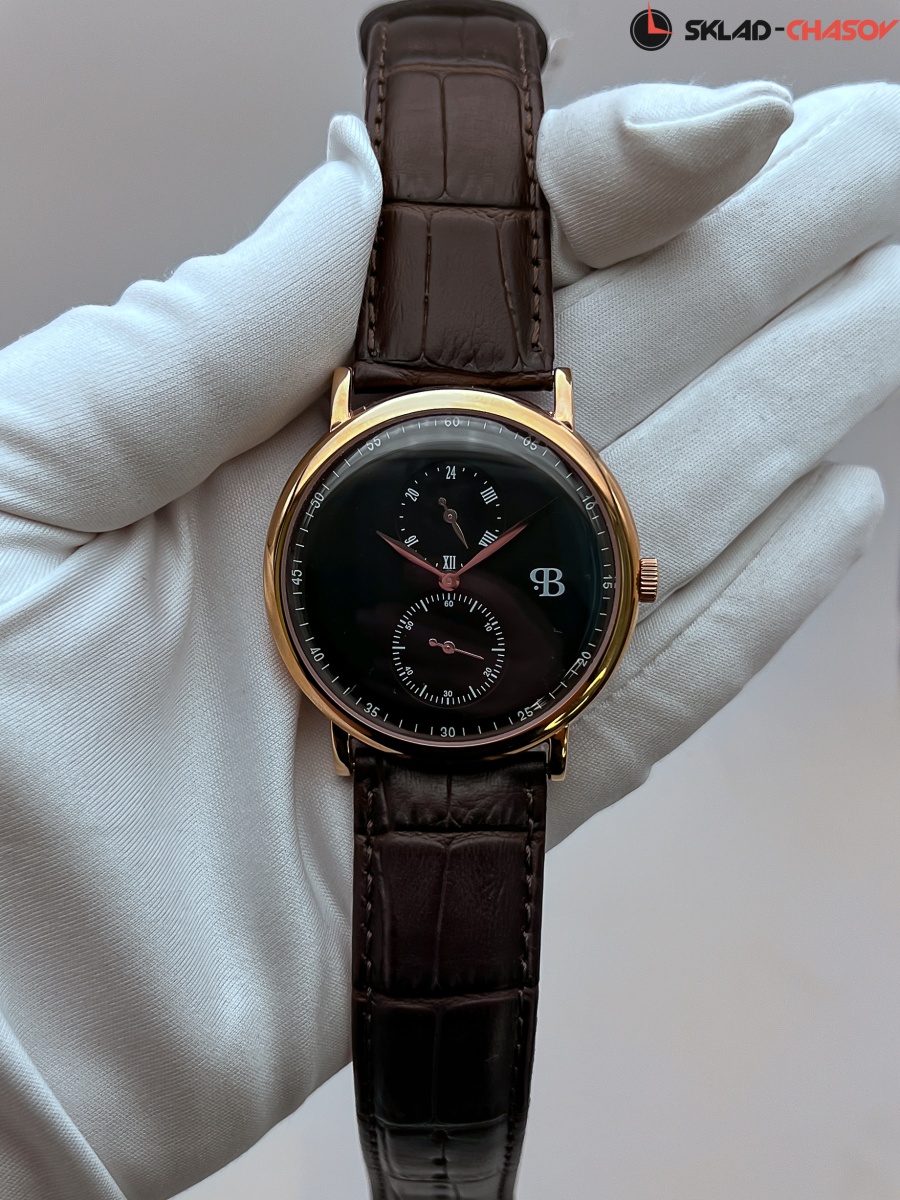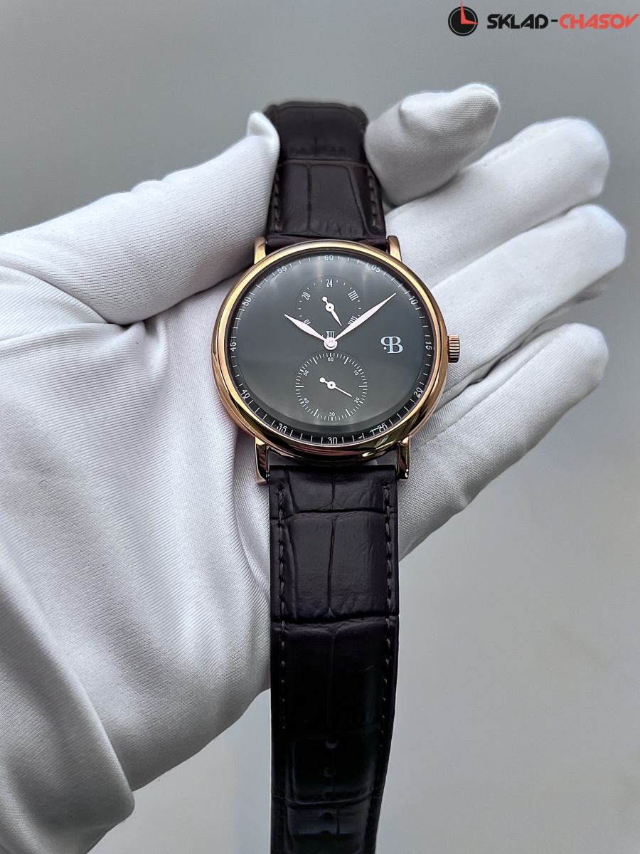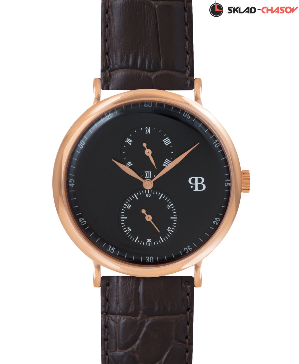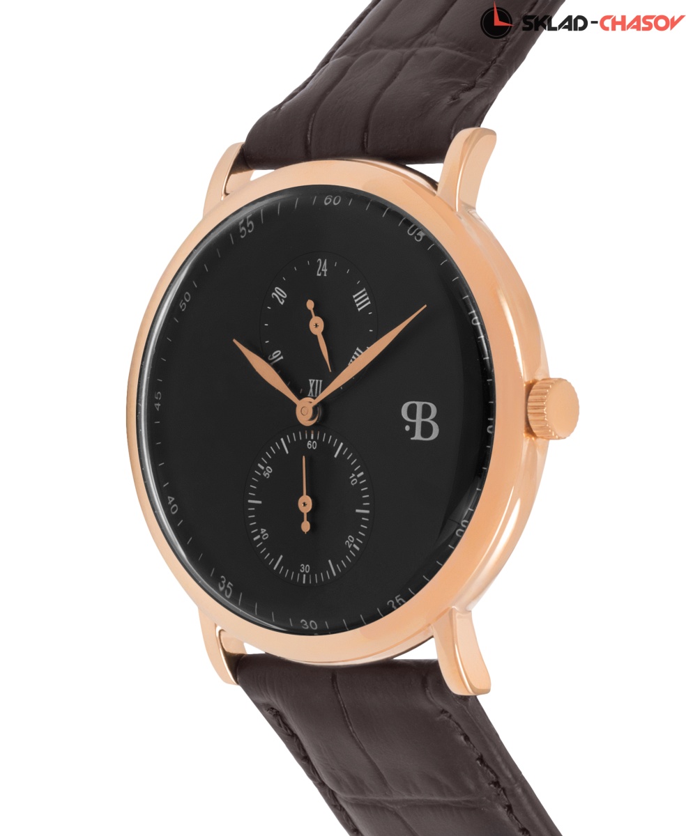 Прочный круглый корпус выполнен из высококачественной нержавеющей стали и покрыт защитно-декоративным слоем цвета розового золота. Минеральное стекло имеет высокий уровень прозрачности, не искажает изображения и со временем не мутнеет. Ремешок из натуральной кожи комфортно фиксирует часы на запястье. Все материалы, используемые при производстве модели, гипоаллергенны и абсолютно безопасны для здоровья. Точность хода обеспечивает кварцевый механизм от японского бренда Seiko. На лаконичном циферблате отчетливо выделяются часовая и минутная стрелки под цвет корпуса, а также две дополнительные шкалы – секундная и 24-часовая.