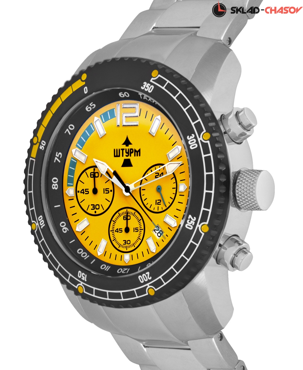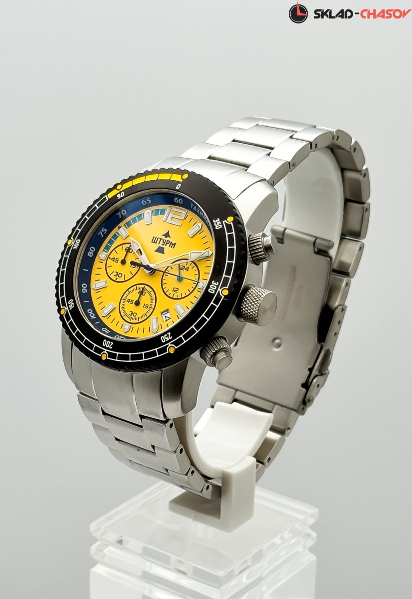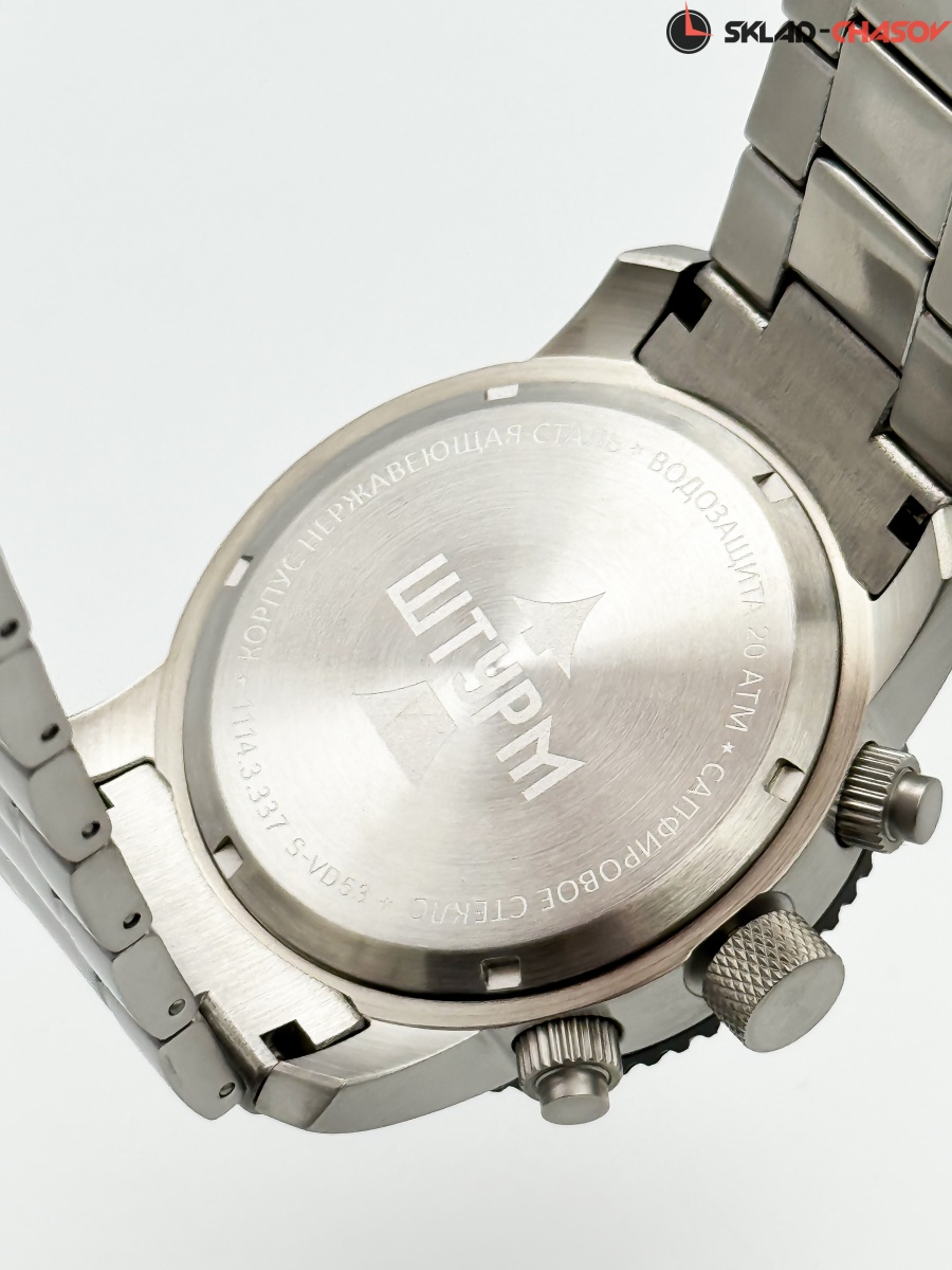 Завинчивающаяся заводная головка и кнопки на корпусе."