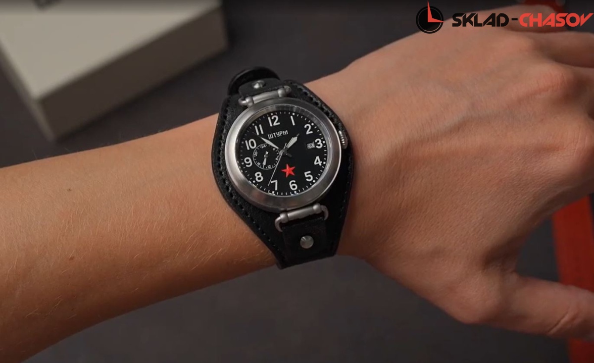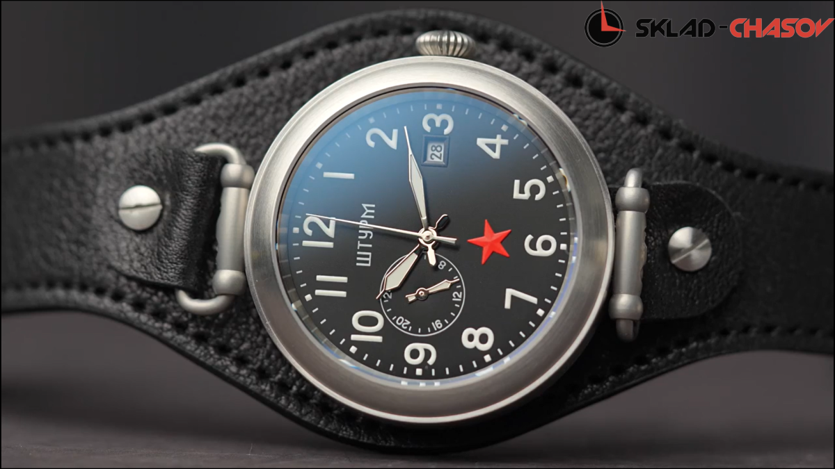 Объемная красная звезда на циферблате