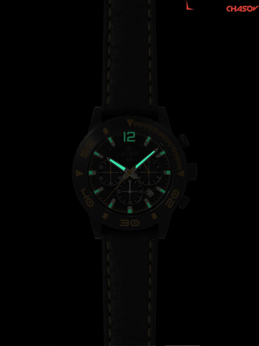Люминесцентное покрытие на элементах циферблата, ремень на быстросъемном механизме"