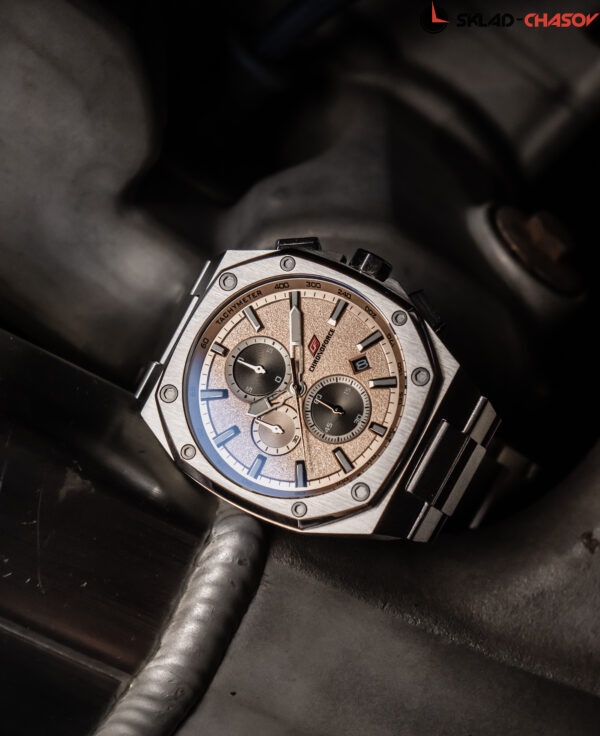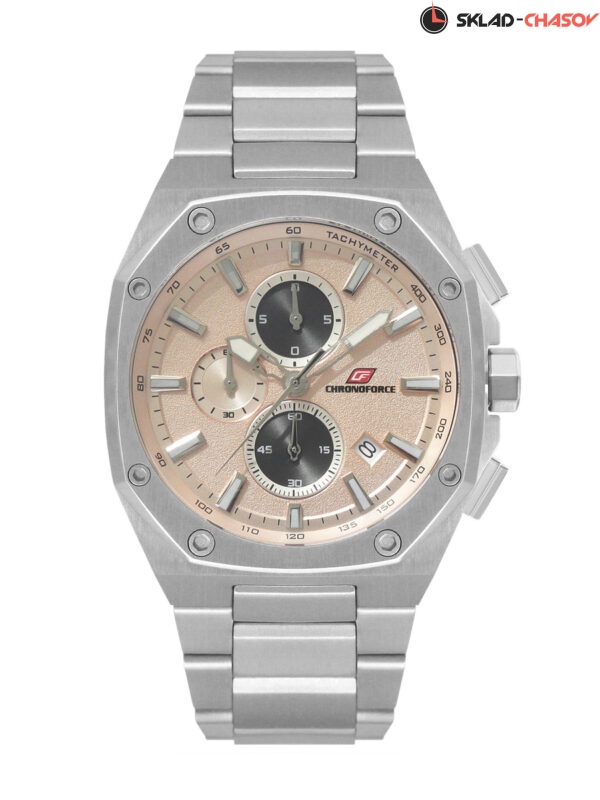 Спортивные наручные часы с хронографом отмеряют время с точностью до долей секунды (1/10 сек, 1 сек, 60 мин). Корпус выполнен из нержавеющей стали AISI 304, придающей часам особую прочность и стойкость от повреждений. Циферблат защищен упрочненным минеральным стеклом Hardlex. Часовая и минутная стрелки имеют люминесцентное покрытие. Браслет изготовлен из высококачественной нержавеющей стали. Дополнительные функции: дата.