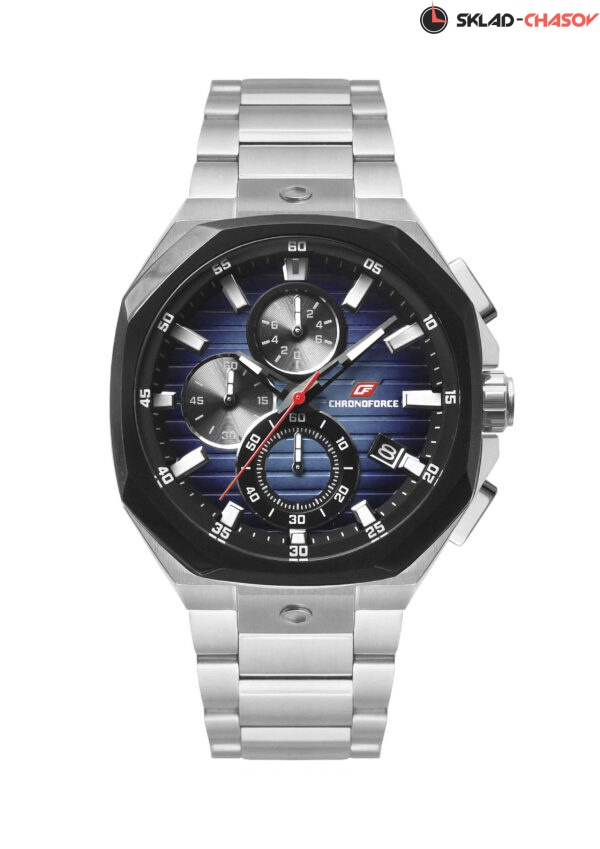Спотивные наручные часы с хронографом отмеряют время с точностью до долей секунды (1/10 сек, 1 сек, 60 мин). Корпус выполнен из нержавеющей стали AISI 304, придающей часам особую прочность и стойкость от повреждений. Его дополняет акцентный безель. Циферблат защищен упрочненным минеральным стеклом Hardlex. Часовая и минутная стрелки, а также индексы имеют люминесцентное покрытие. Контрастный браслет изготовлен из высококачественной нержавеющей стали. Улучшенный японский механизм Seiko Instrument VD57. Дополнительные функции: дата.