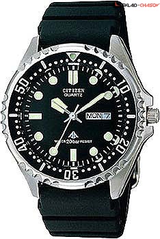 Корпус из нержавеющей стали, часы, минуты, секунды, индикация числа, день недели, люминесцентные стрелки и метки, вращающийся безель, резиновый ремешок.