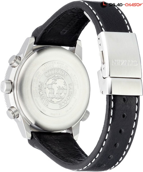 Система Eco-Drive не требующая замены батарейки. Питание от солнечной энергии, запас энергии на 180 дней. Автоматическая настройка времени по радиосигналу в Европе. Часы-хронограф с секундомером с точностью показаний 1/20c и временем измерения 1ч. Второй часовой пояс. 12-ти и 24-х часовой формат времени. Логарифмическая линейка. Застежка с защитой от самопроизвольного раскрывания.