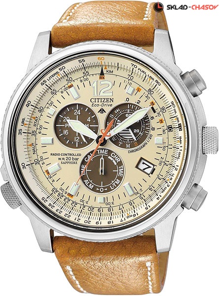 Система Eco-Drive не требующая замены батарейки. Питание от солнечной энергии, запас энергии на 180 дней. Автоматическая настройка времени по радиосигналу в Европе. Часы-хронограф с секундомером с точностью показаний 1/20c и временем измерения 1ч. Второй часовой пояс. 12-ти и 24-х часовой формат времени. Логарифмическая линейка. Застежка с защитой от самопроизвольного раскрывания.