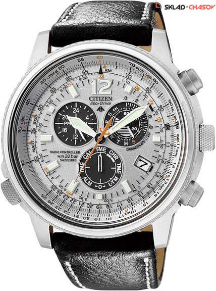 Функциональные спортивные часы в стиле авиаторов. С ними высокие результаты гарантированы. Promaster Sky. Система Eco-Drive не требующая замены батарейки. Питание от солнечной энергии, запас энергии на 180 дней. Автоматическая настройка времени по радиосигналу. Часы-хронограф с секундомером с точностью показаний 1/20c и временем измерения 1ч. Второй часовой пояс. 12-ти и 24-х часовой формат времени. Логарифмическая линейка. Ремешок с раскладывающейся застежкой. Застежка с системой блокировки.
