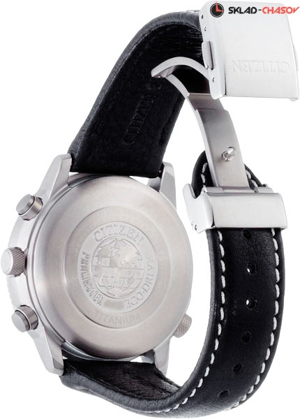 Promaster Sky. Система Eco-Drive не требующая замены батарейки. Питание от солнечной энергии, запас энергии на 180 дней. Автоматическая настройка времени по радиосигналу в Европе. Часы-хронограф с секундомером с точностью показаний 1/20c и временем измерения 1ч. Второй часовой пояс. 12-ти и 24-х часовой формат времени. Логарифмическая линейка. Застежка с защитой от самопроизвольного раскрывания.
