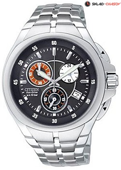Корпус и браслет из нержавеющей стали, часы, минуты, секунды, индикация числа, диаметр 42 мм.