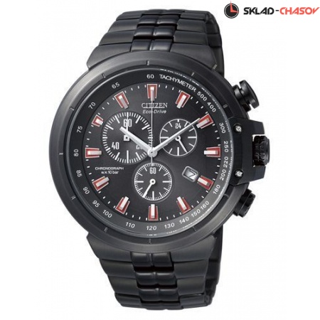 Часы-хронограф с секундомером и тахиметром. Система Eco-Drive не требующая замены батарейки. Питание от солнечной энергии, запас хода без дополнительной подзарядки 5 месяцев.