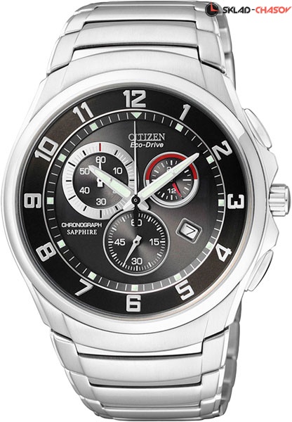 Часы-хронограф с секундомером до 60 мин, точностью 1 сек. Система Eco-Drive не требующая замены батарейки. Питание от солнечной энергии, запас энергии на 150 дней. Система предупреждения о низком уровне заряда аккумулятора за 120 часов до критического уровня. 12-ти и 24-х часовой формат времени. Застежка с защитой от самопроизвольного раскрывания.