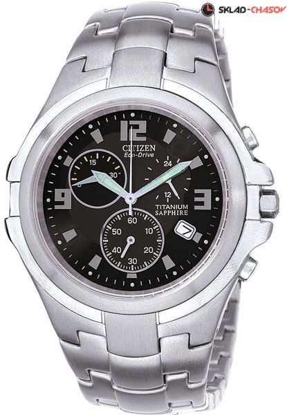 Механизм с системой ECO-DRIVE. Часы-хронограф с секундомером, завинчивающаяся задняя крышка.